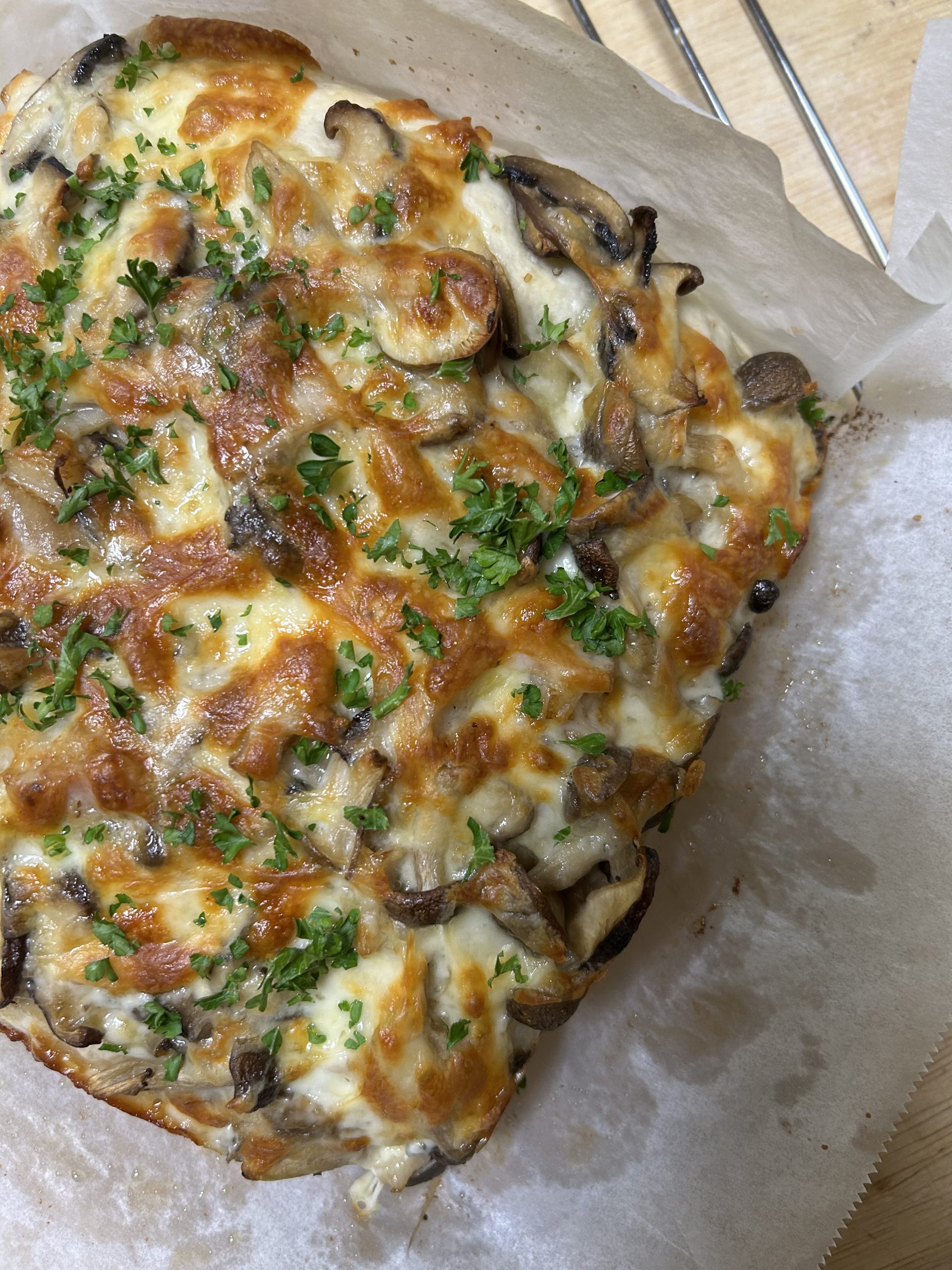 きのこと無塩せきベーコンのピザフォカッチャ